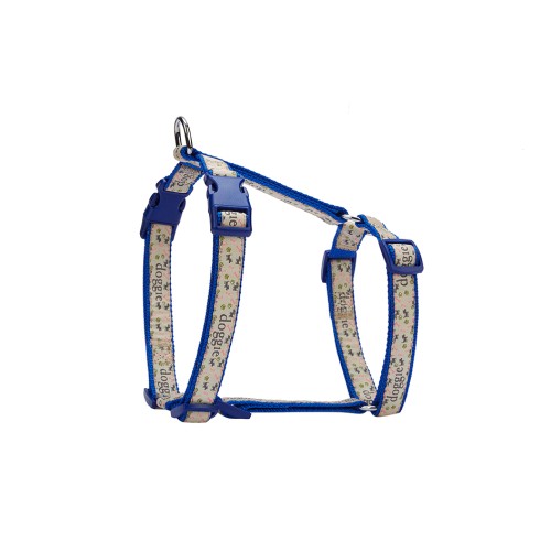 Doggie Desenli Süslü Dokuma Köpek Göğüs Tasması 1,5 x 30-35 cm Mavi