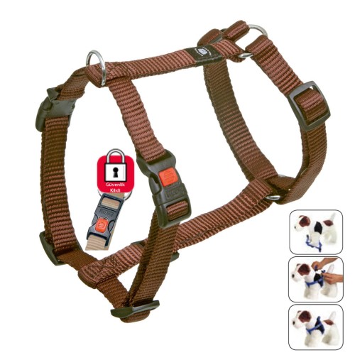 Ayarlanabilir, dayanıklı naylon materyalden, göz alıcı renklere sahip göğüs tasması. Metal parçalar krom kaplamadır. Klipsler kilit mekanizmalıdır.