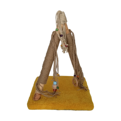 Püsküllü Boncuklu Kedi Tırmalama Tahtası + Oyun Alanı 30*40 cm Hardal Sarısı