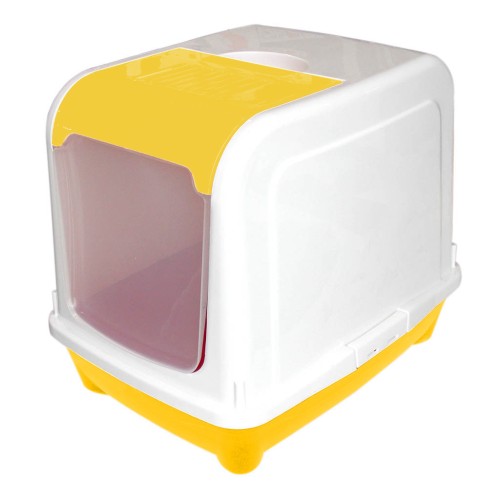 Kapalı Çift Açılır Kedi Tuvaleti 50/38/42 cm Sarı Karbon Filtreli