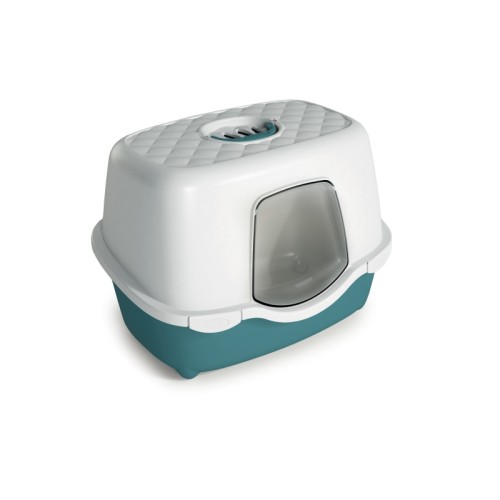 Aktif karbon filtreli, taşımayı kolaylaştıran üstten saplı, dayanıklı ve temizlemesi kolay kapalı kedi tuvaleti.