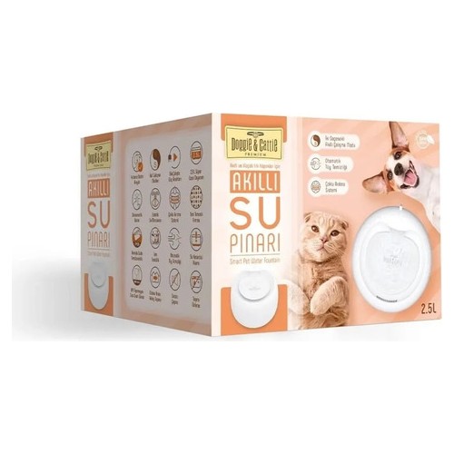2,5 litre hacme sahip akıllı arıtma sistemine sahip kedi köpek su pınarıdır. İçerisindeki özel tasarlanmış yapsıyla kullandığınız suyu hem fiziksel hemde biyolojik olarak arındırır.