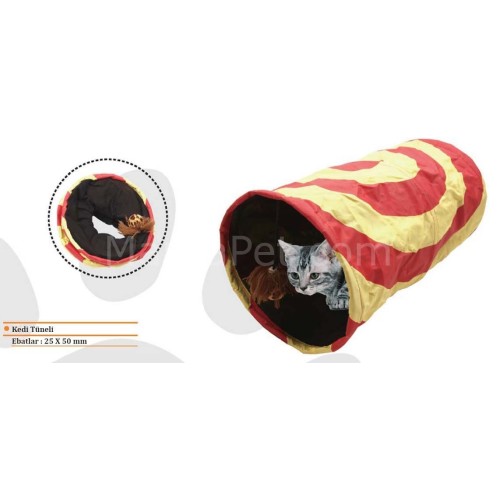 25 cm çapındadır. Tüm ırk kediler için uygundur. 50 cm uzunluktadır. Tünel üzerinde çıngırak mevcuttur. Kediniz içerisinden geçerken çıkan sesle vazgeçmeden sürekli oynamak isteyecektir. Renkli, sesli desenli kedi oyun alanıdır.
