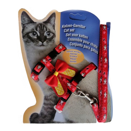 Yetişkin kediler için üretilmiş kedi göğüs bel tasmasıdır. Boyun ve göğüs kısmı ayarlanabilir özellikte ve klipslidir. Göğüs tasması ve gezdirme tasması set halindedir.