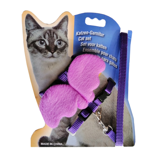Yetişkin kediler için üretilmiş kedi göğüs bel tasmasıdır. Boyun ve göğüs kısmı ayarlanabilir özellikte ve klipslidir. Göğüs tasması ve gezdirme tasması set halindedir.