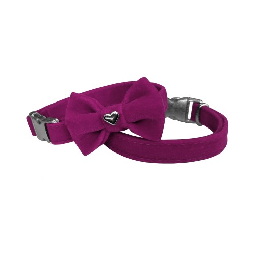 Markapet Kadife Papyonlu Kedi Boyun Tasması 20-32 cm Koyu Pembe