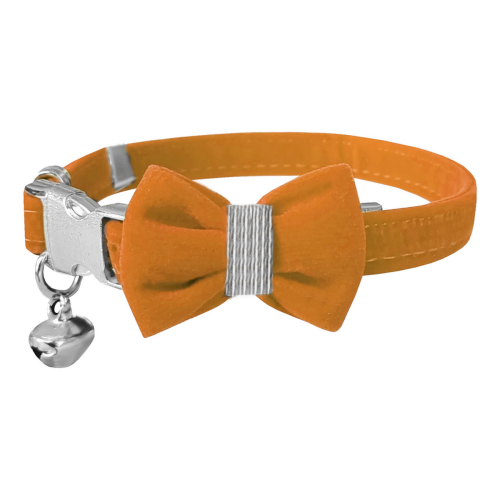 Markapet Kadife Kedi Boyun Tasması Papyonlu 20-32 cm Turuncu