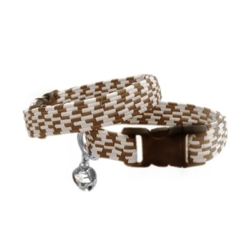 Elastik Örme Kedi Tasması Kahverengi-Krem 10 mm A=23/32 cm