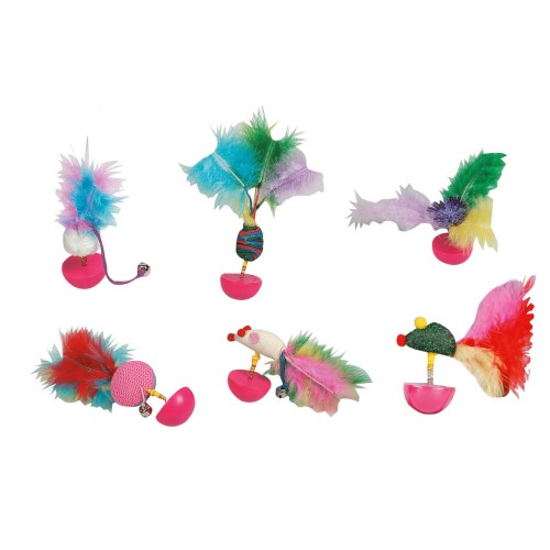 Renkli tüylü, hacıyatmaz kedi oyuncağı. 12 cm yükseklik. 3,5 cm çap.
