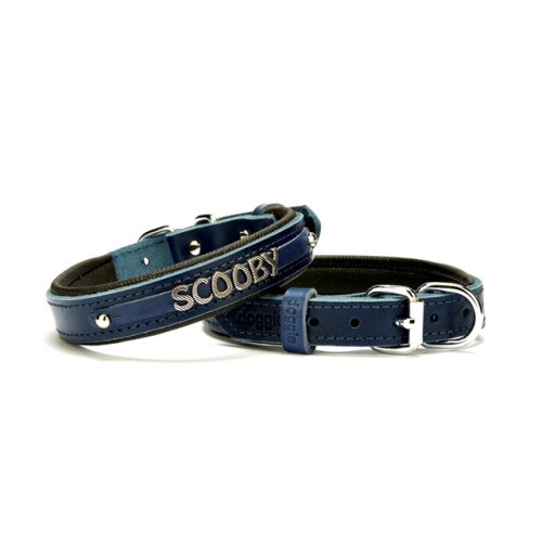 Doggie Deri İsimlikli Köpek Tasması 2x35-40 cm Mavi