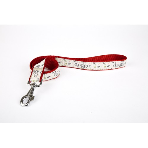 Doggie Desenli Süslü Dokuma Köpek Gezdirme Kayışı El Yapımı 3 x 100 cm Kırmızı