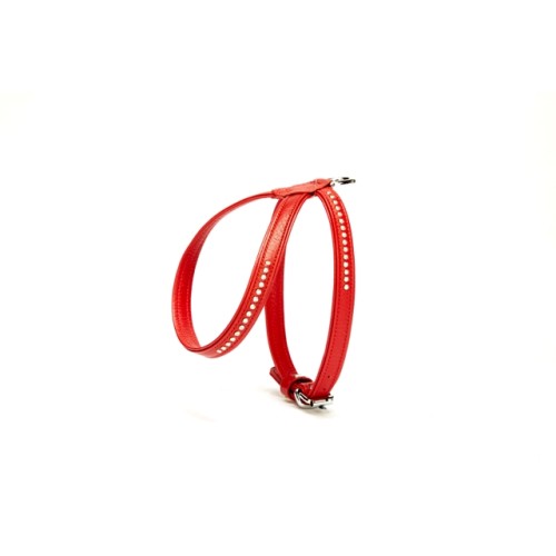 Doggie Flotter Swarovski Taşlı Deri Köpek Göğüs Tasması 1,5 x 35-45 cm Kırmızı