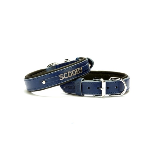 Doggie Deri İsimlikli Köpek Tasması 2,5x37-45 cm Mavi