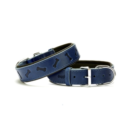 Doggie Kemik Desenli Deri Köpek Boyun Tasması 3,5x47x55 cm Mavi