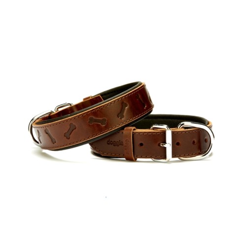 Doggie Kemik Desenli Deri Köpek Boyun Tasması 4x52x60 cm Kahverengi