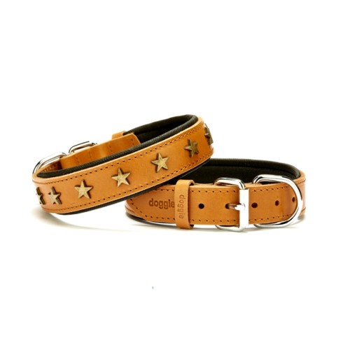 Doggie Yıldız Desenli Deri Köpek Boyun Tasması 3x42x50 cm Kamel