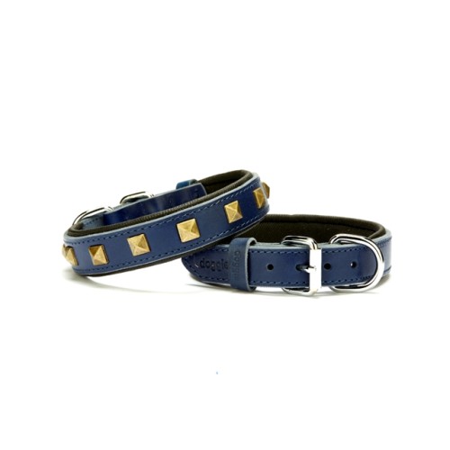 Doggie Piramit Metal İşlemeli Deri Köpek Boyun Tasması 3,5x47x55 cm Mavi
