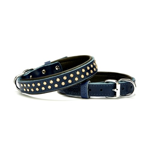 Doggie Konforlu Deri Swarovski Kristal Taşlı Köpek Boyun Tasması 2 x 32-39 cm Mavi