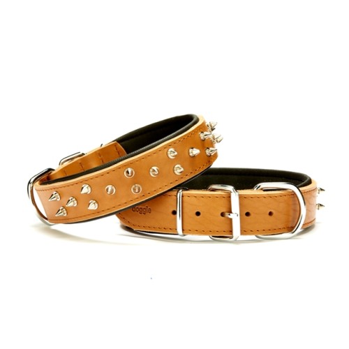 Doggie Ektsra Çivili Deri Köpek Boyun Tasması 4x57-65 cm Kamel
