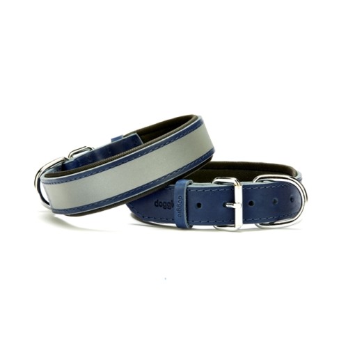 Doggie Konforlu Reflektörlü Deri Köpek Tasması 3,5x52-60 cm Large Mavi