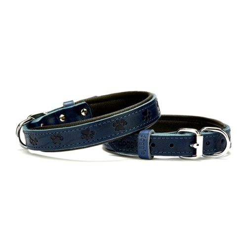 Doggie Pati Desenli Deri Köpek Boyun Tasması 2x30x35 cm Mavi