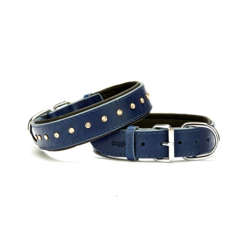 Doggie Konforlu Deri Swarovski Kristal Taşlı Köpek Boyun Tasması 3,5 x 50-59 cm Mavi
