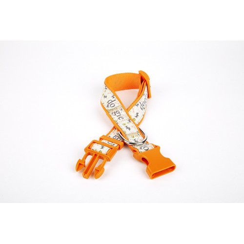 Doggie Köpek ve Pati Desenli Dokuma Köpek Boyun Tasması 3 cm x 36-60 cm Turuncu 35 kg